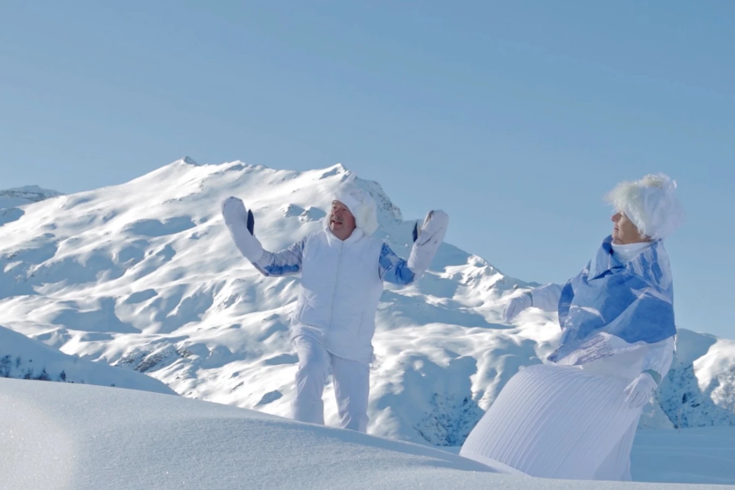 Les trois vidéos présentées invitent le·la spectateur·trice à partager une expérience visuelle silencieuse et contemplative, à saisir l’instant où les personnages se fondent parfaitement dans le paysage alpin. Le mouvement, élément central de l’œuvre, nous pousse à repenser notre rapport à l’âge, à l’humain et à la nature, ouvrant ainsi la voie à un renversement des rythmes qui gèrent habituellement nos quotidiens.