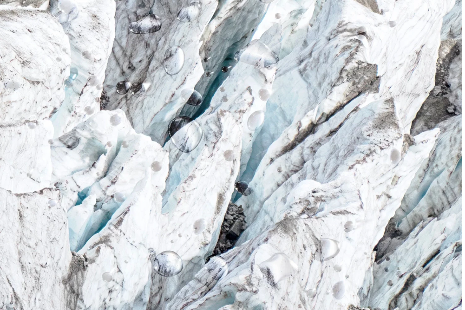 Des enregistrements de terrain de trois glaciers alpins en train de fondre – du Rhône, d’Aletsch et de Morteratsch – sont assemblés en une composition sonore immersive qui forme une symphonie de glaciers en voie de disparition.